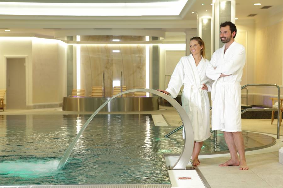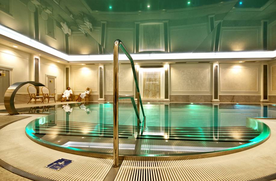 - Swimming pool with a massage jet, stainless steel, size 12.5×6.5 m, temperature 28–30°C